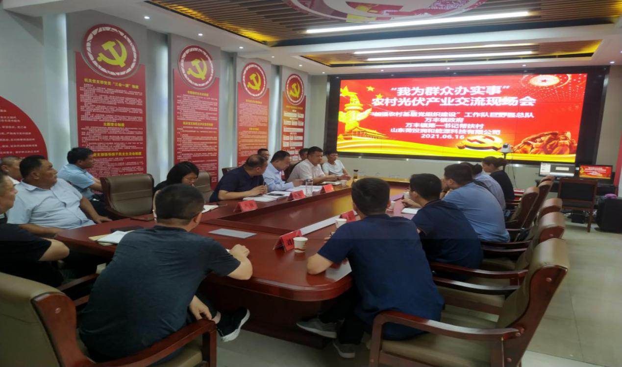 6月16日,山東菏投潤(rùn)和能源科技有限公司副總經(jīng)理崔巍、張培永前往巨野縣萬豐鎮(zhèn)鎮(zhèn)政府與“加強(qiáng)農(nóng)業(yè)基層黨組織建設(shè)工作隊(duì)”巨野縣總隊(duì)副總隊(duì)長(zhǎng)閆建群、唐亮,萬豐鎮(zhèn)政府相關(guān)負(fù)責(zé)人,各村鎮(zhèn)省派市派第一書記、幫扶村負(fù)責(zé)人等展開座談會(huì),圍繞“我為群眾辦實(shí)事”農(nóng)村光伏產(chǎn)業(yè)展開深入交流,并實(shí)地查看巨野縣新農(nóng)村建設(shè)情況。