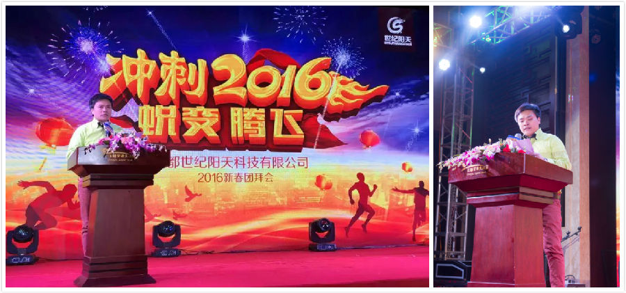 隨后,肖董事長登臺致詞,表達了對員工辛勤付出的感謝,總結(jié)了2015年的工作,指出了當(dāng)前面臨的問題,重點提出了2016年里新的要求。2015年,是探索的一年,公司的三大板塊:互聯(lián)網(wǎng)游戲、世紀(jì)守護、開心系列已準(zhǔn)備就緒。2016年,則是蛻變、騰飛、變革的一年。我們需要“蛻去”原來的工作思維和管理理念;“變革”為獎懲分明,實干興邦的企業(yè)。
