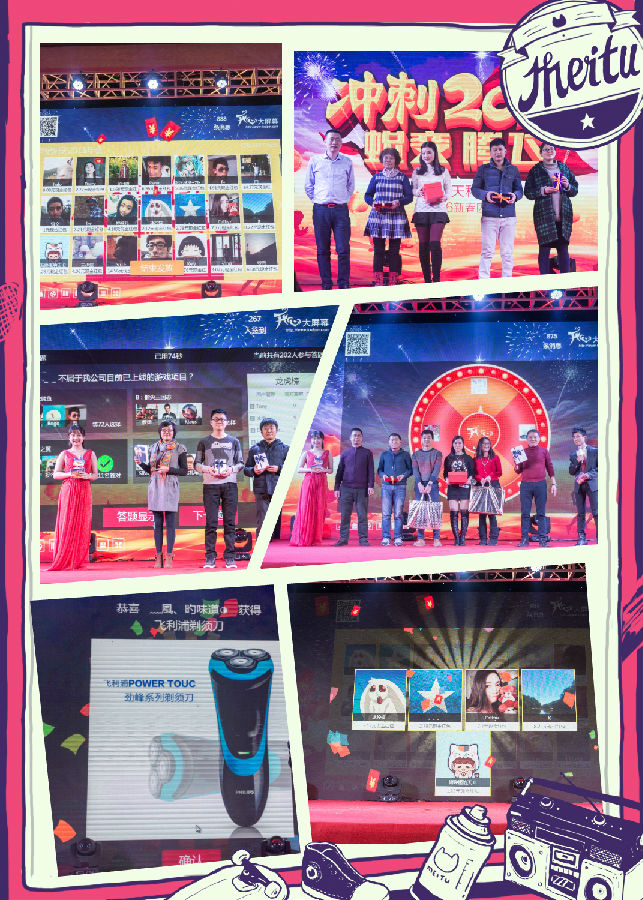 比賽結(jié)束后,大家立即進入年會主場,公司互動軟件“開心大屏幕M3D”倒計時一下將氣氛帶入第一個頂點,“沖刺2016·蛻變·騰飛”的主題年會正式開始。