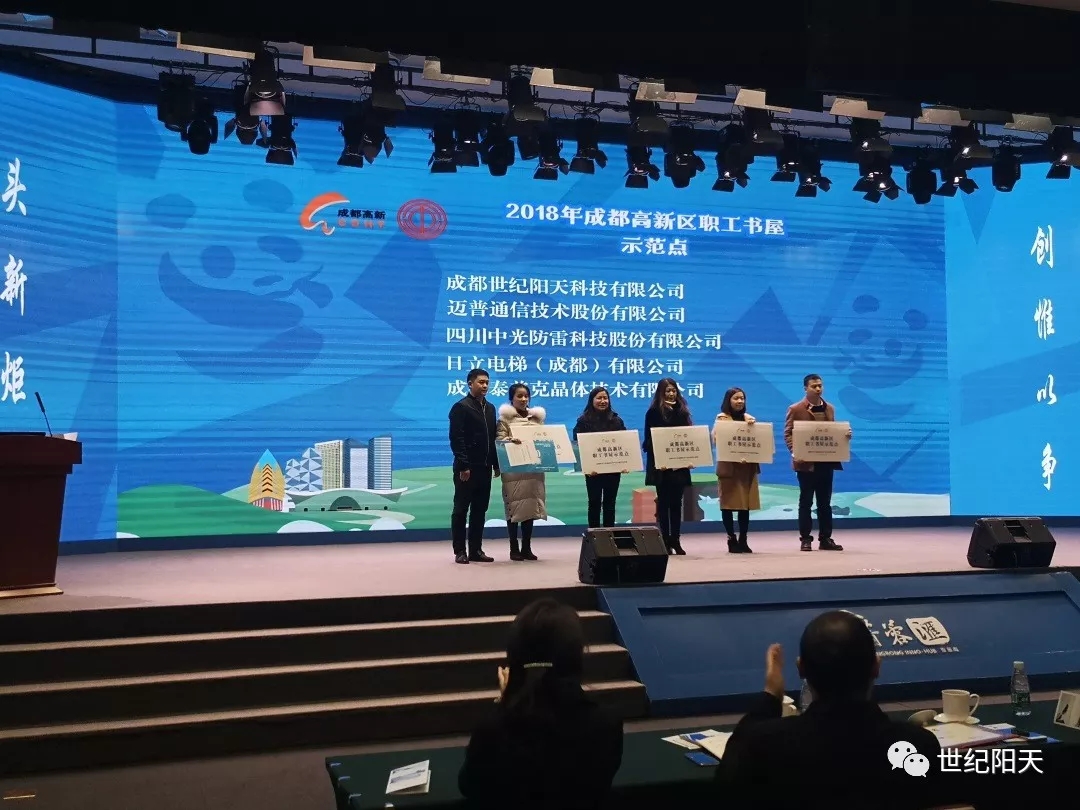 2019年1月11日,在“2018年成都高新區(qū)工會(huì)工作總結(jié)會(huì)議暨‘學(xué)習(xí)中國(guó)工會(huì)十七大精神’宣講活動(dòng)”的現(xiàn)場(chǎng),高新區(qū)工會(huì)為我司授予“職工書(shū)屋示范點(diǎn)”榮譽(yù)牌匾。
