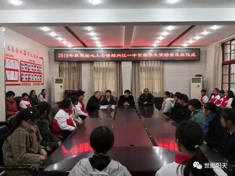 12月27日,“2019年秋期愛心人士資助內(nèi)江一中貧困學(xué)生資助金發(fā)放儀式”在內(nèi)江一中舉行。世紀(jì)陽天旗下智慧教育品牌-世紀(jì)博創(chuàng)內(nèi)江分公司負(fù)責(zé)人甘曉宇、內(nèi)江一中王校長等雙方代表出席捐贈(zèng)儀式。在此次捐贈(zèng)儀式上,內(nèi)江分公司向在場貧困學(xué)子捐贈(zèng)資助金共計(jì)3.6萬元。
