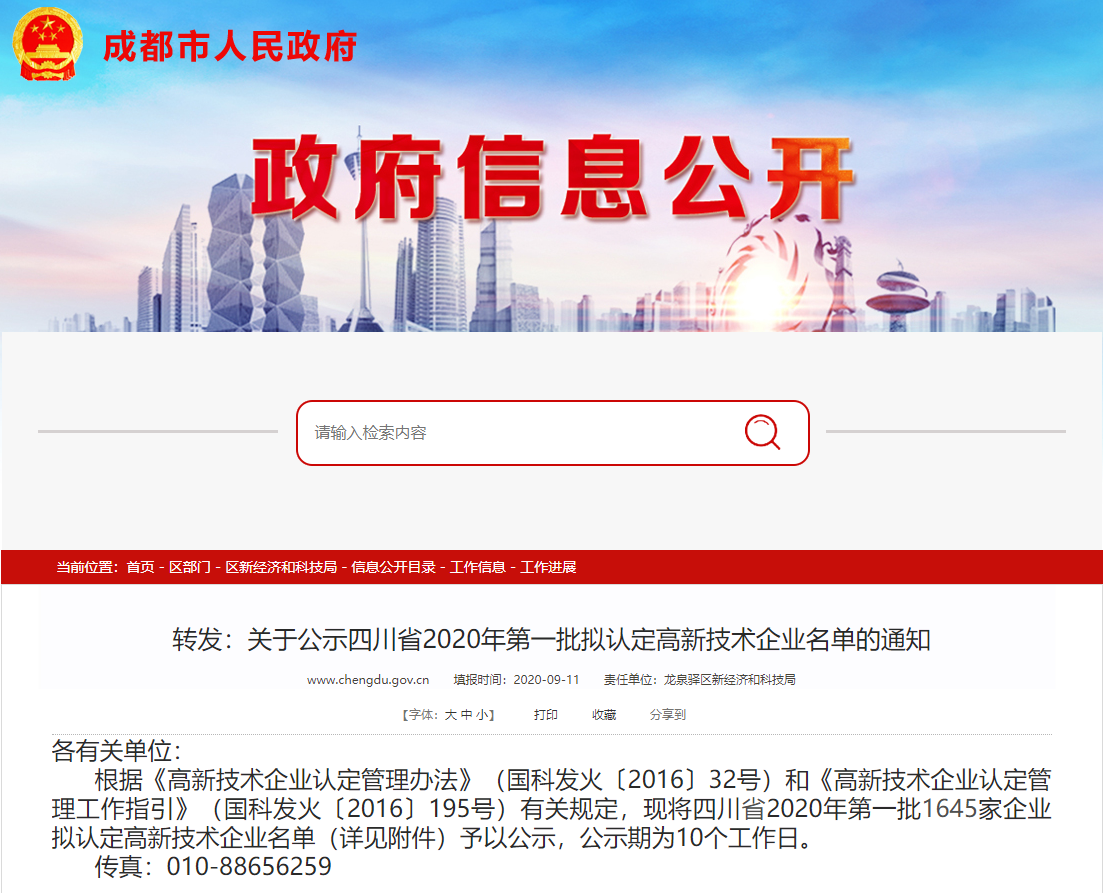 導(dǎo)語:根據(jù)《高新技術(shù)企業(yè)認定管理辦法》(國科發(fā)火〔2016〕32號)和《高新技術(shù)企業(yè)認定管理工作指引》(國科發(fā)火〔2016〕195號)有關(guān)規(guī)定,四川省2020年第一批擬認定高新技術(shù)企業(yè)名單予以公示。成都世紀陽天科技有限公司名列其中,目前已順利通過公示階段。由此公司已連續(xù)2次獲此殊榮,再次邁入高新技術(shù)企業(yè)行列。
