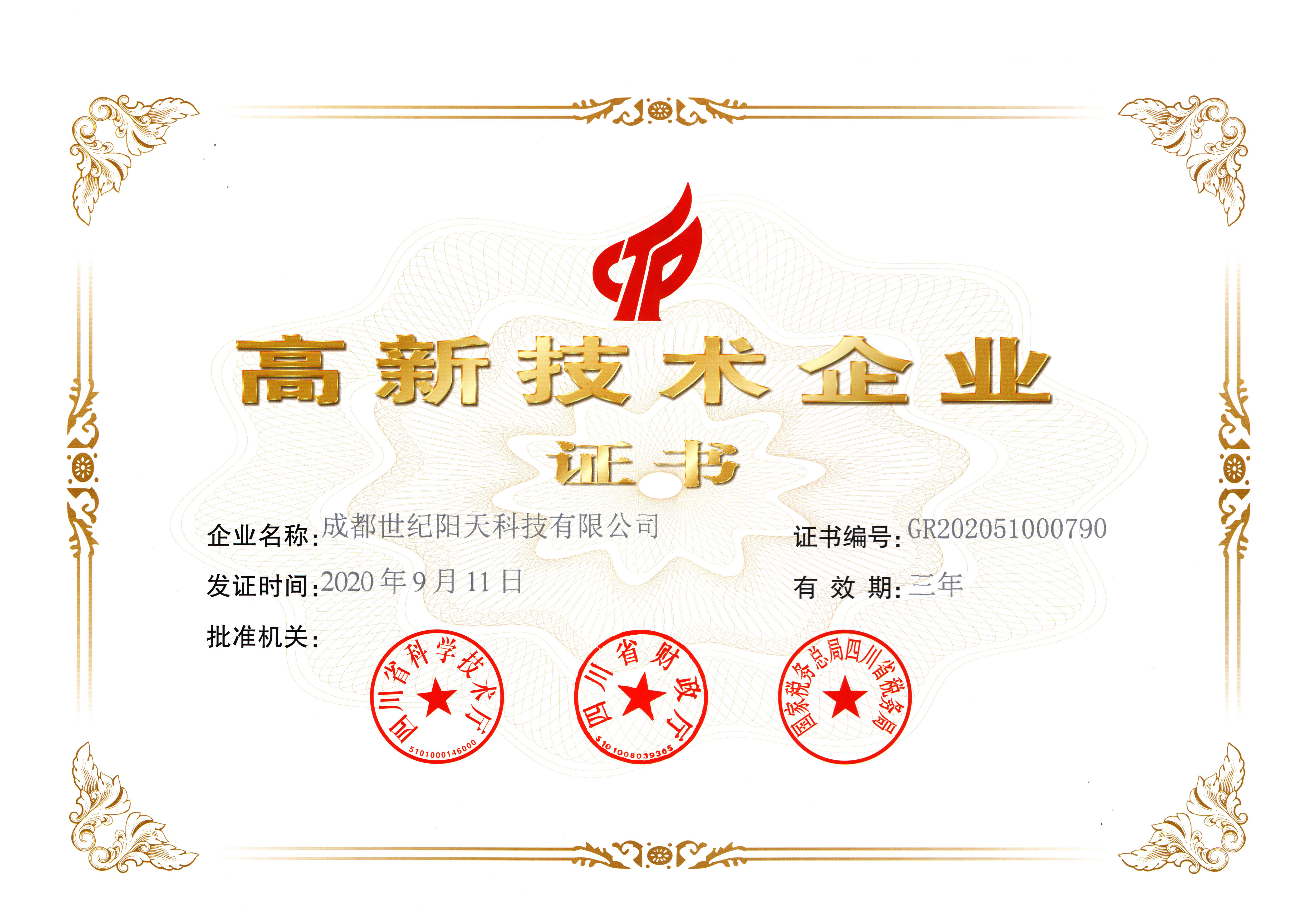 此次再次獲得“高新技術(shù)企業(yè)”的認證,標(biāo)志著公司技術(shù)及創(chuàng)新水平邁上了一個新的臺階,同時也意味著國家科技部門對我司技術(shù)管理、服務(wù)水平與創(chuàng)新實力的認可及肯定。對依靠研發(fā)立身的世紀陽天來說,不僅是一種榮譽,更是一種責(zé)任。